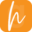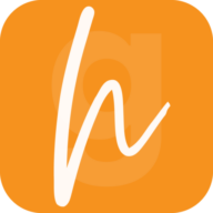 Das Bild zeigt das Wort hier in einer lässigen, orangefarbenen Schriftart auf weißem Hintergrund.